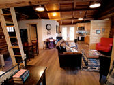 The Log Cabin is located over looking the lower fields and is perfect for a cozy getaway. The cabin sleeps up to four with one queen and two twins (in the loft) with a private bathroom and a kitchenette. Sequestered in the trees, the cabin is private while still remaining central and has a warm, hygge feel while having all the amenities of modern life.